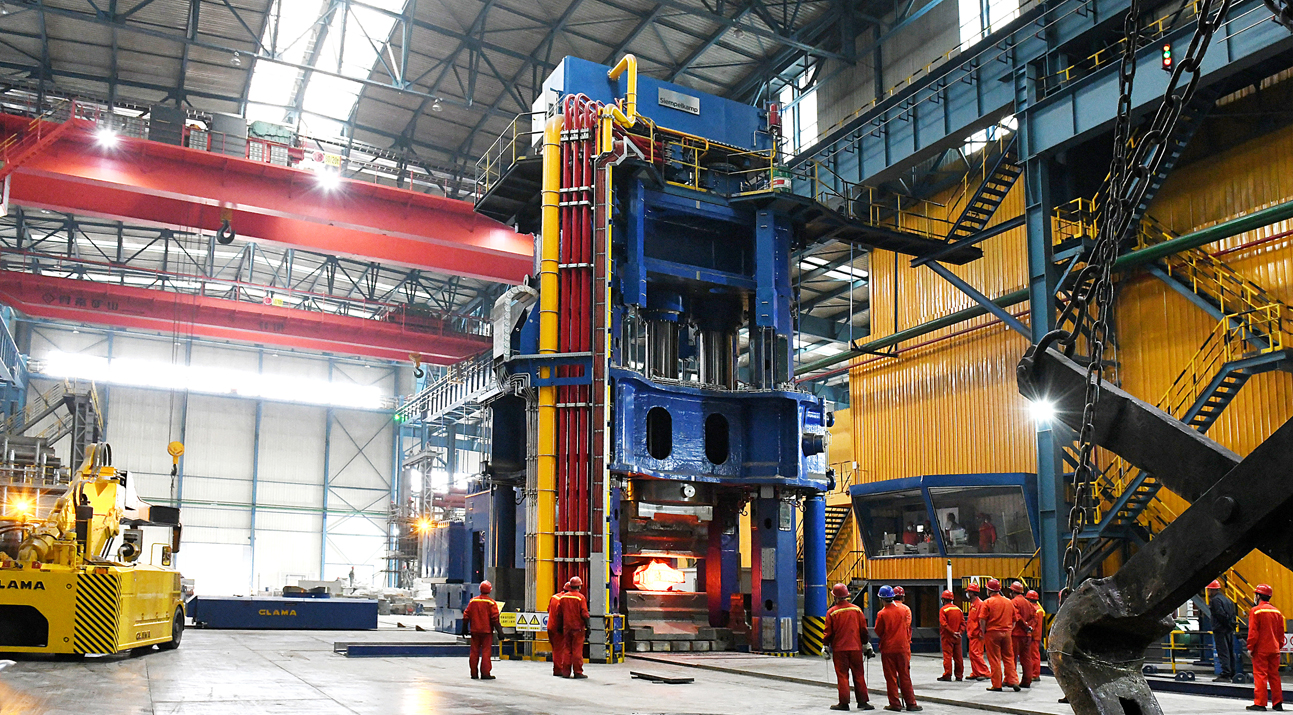 6月6日,撫順特鋼鍛造廠新線7000噸快鍛機的首次熱負荷試車喜獲成功,主要操作系統(tǒng)和技術(shù)指標均達到了技術(shù)協(xié)議的要求。該設備總安裝重量達到1300噸,配套22臺爐窯,包括臺車加熱爐、臺車熱處理爐、室式爐,年設計產(chǎn)能4萬噸。項目于2021年10月開始設備安裝,今年5月份開始冷調(diào)試。