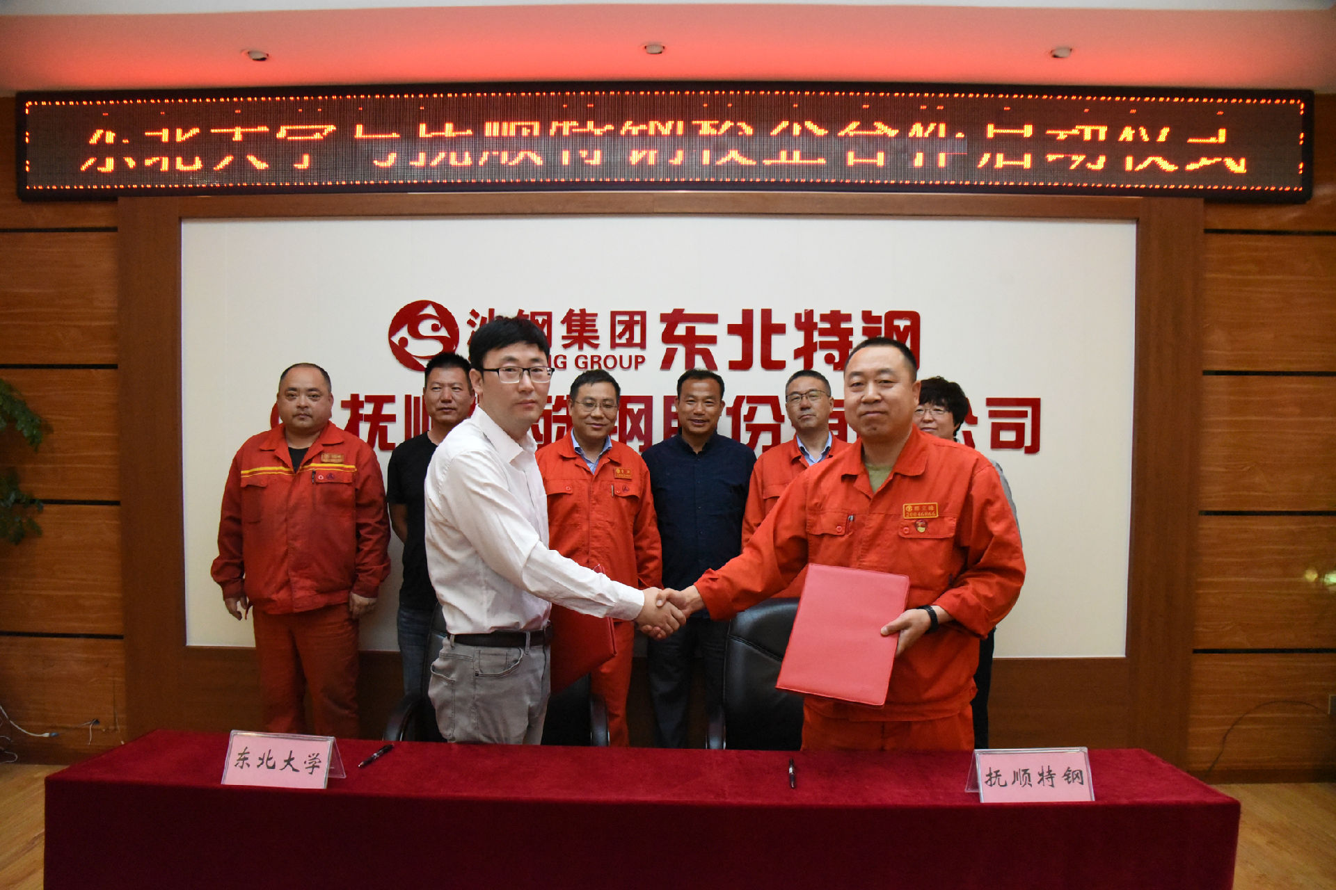 啟動(dòng)儀式上,撫順特鋼連軋廠(chǎng)廠(chǎng)長(zhǎng)穆立峰與東北大學(xué)副教授呂伍分別代表?yè)犴樚劁摵蜄|北大學(xué)在合作項(xiàng)目書(shū)上簽字。