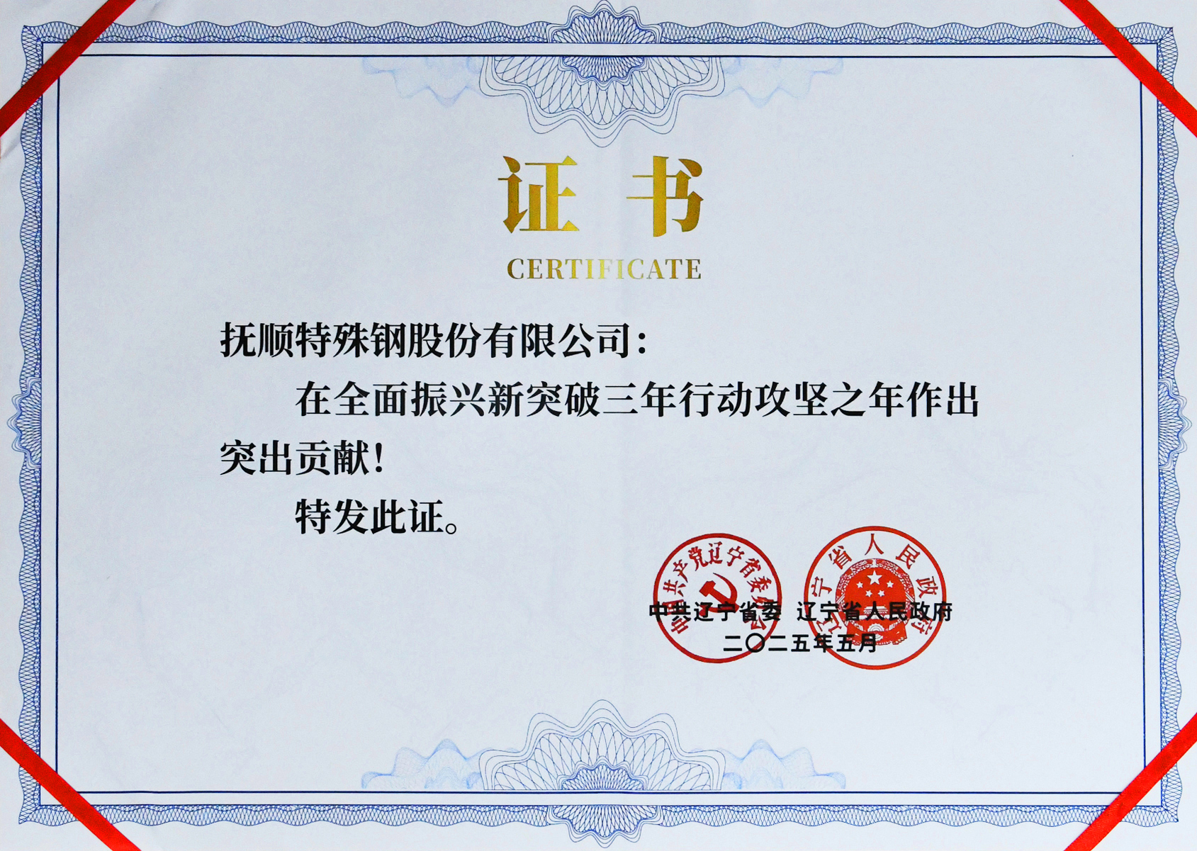 撫順特鋼受到遼寧省委省政府通報表揚(yáng)